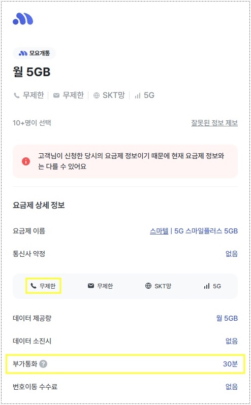 아래는 내가 처음에 가입했던 통화, 문자 무제한, 5GB 요금제다.