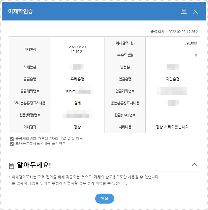 3-1. 이체 확인증은 이런식으로 나온다.