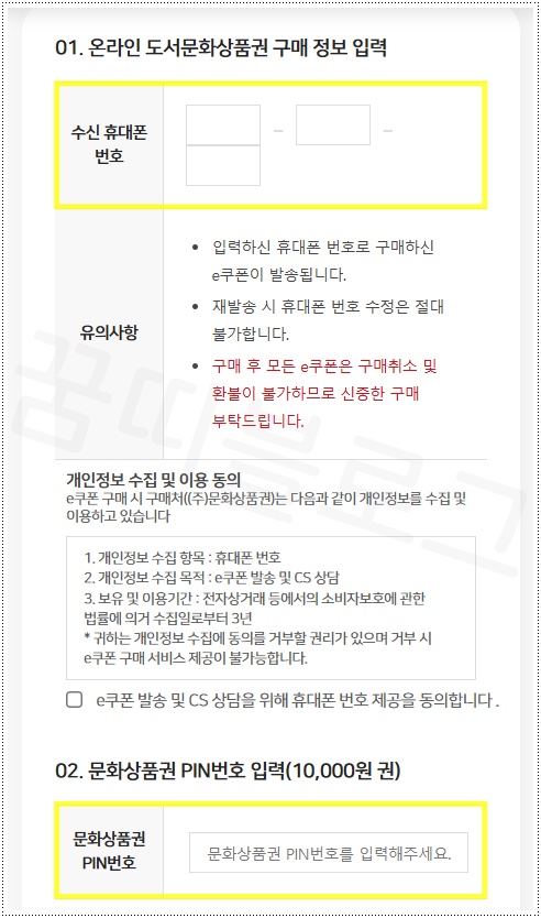 4. 구매 정보를 입력합니다. 휴대폰 번호와 PIN번호 18자리!