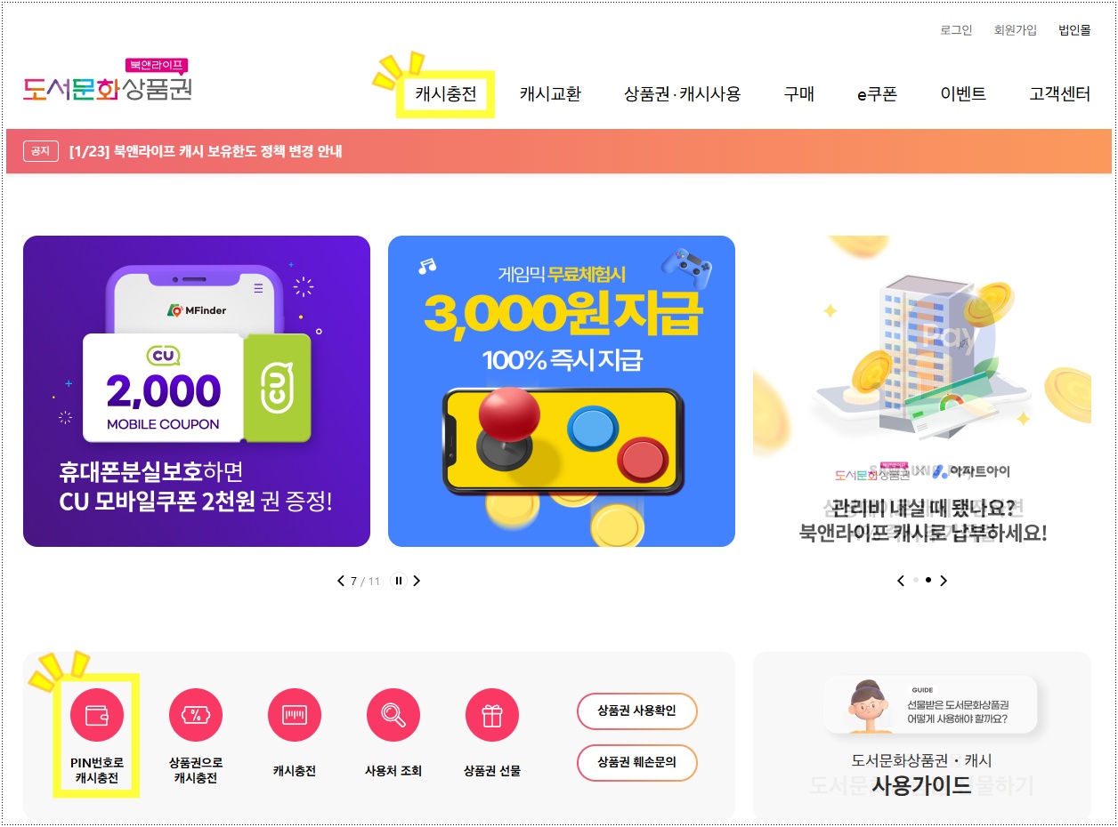 1. 사이트로 이동하여 아래에 e쿠폰을 클릭합니다.