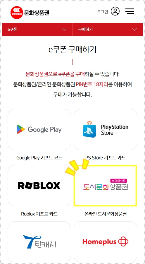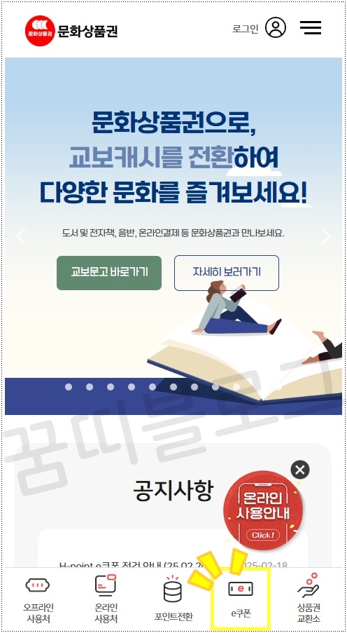 2. 온라인 도서문화 상품권을 클릭해 줍니다.