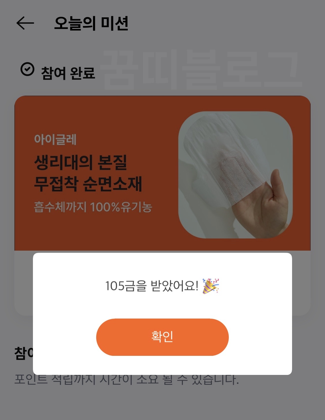 [퀴즈미션] 아이글레 유기농 순면 생리대