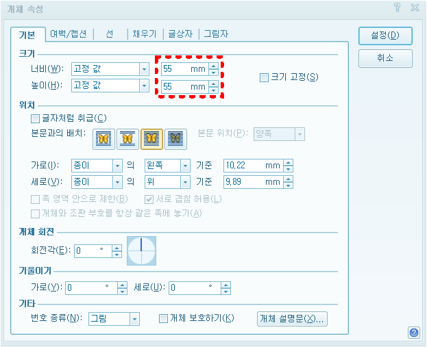 4. 크기 55mm로 지정해 줄게요.(원하는 사이즈 있으면 그에 맞게 설정)