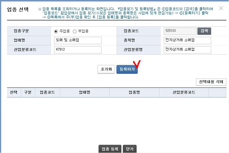 5-6. 체크하고 업종등록 버튼 누르면 끝~~
