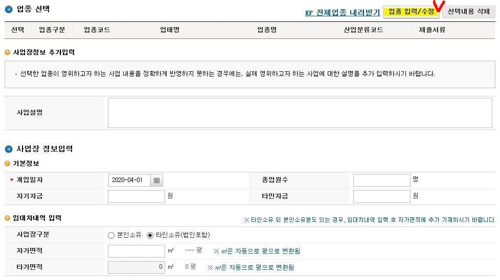 5-1. 업종 입력/수정 버튼을 클릭하면