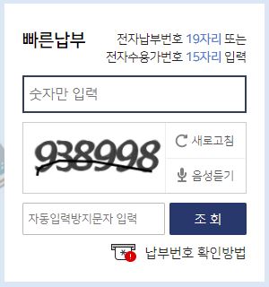 여기에 전자납부번호를 입력하고 조회를 한다.