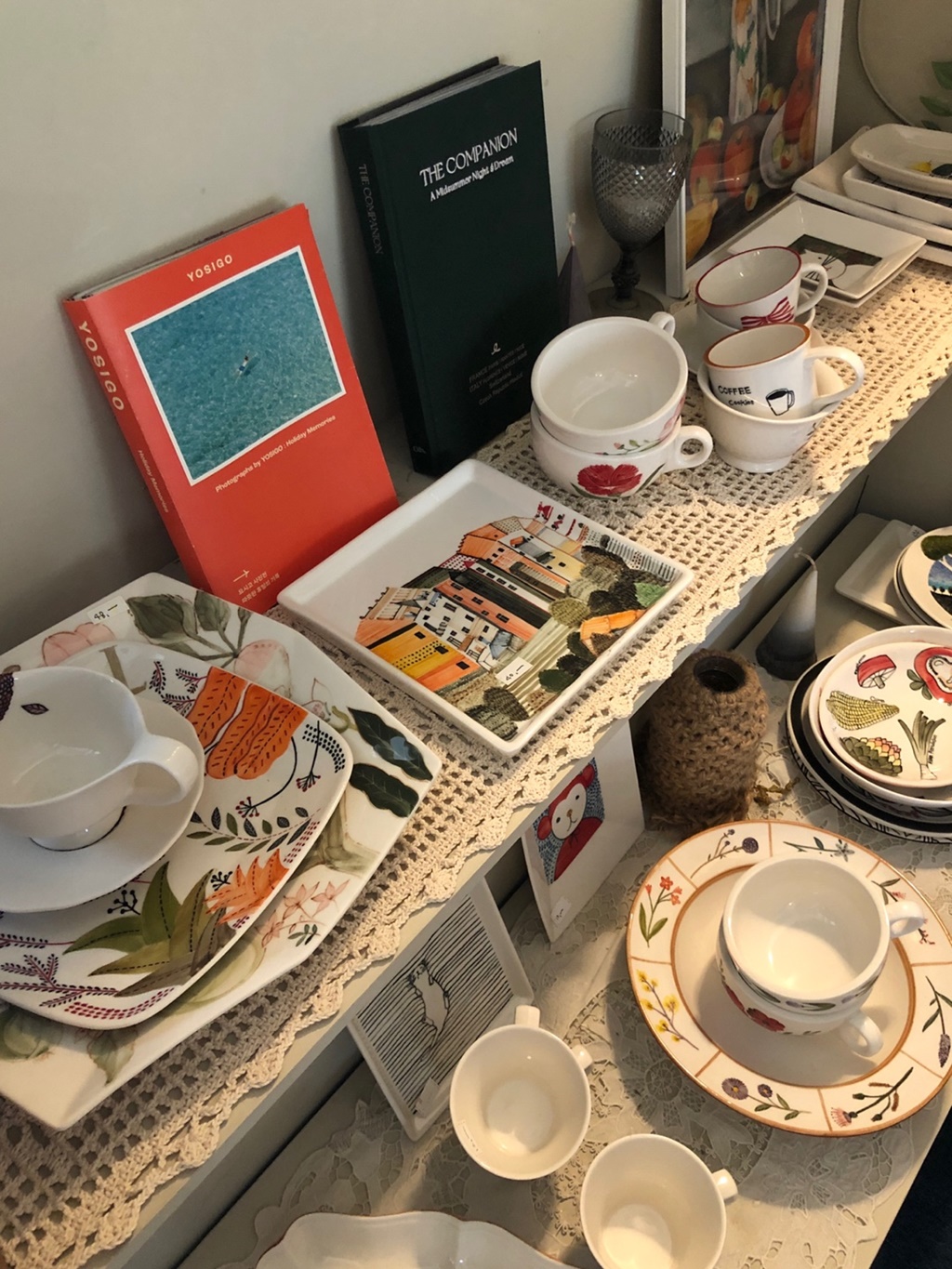 판매하고 있는 접시와 찻잔들