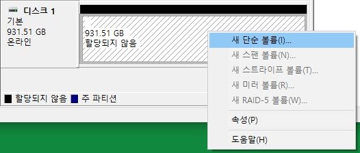 3. 볼륨이 삭제되었다면 다시 우클릭하여 새 단순 볼륨을 누릅니다.