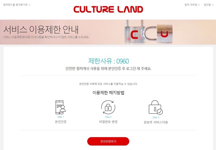 뭔 일인가 싶어서 컬처랜드 홈피 가서 로그인했더니 본인인증하란다..