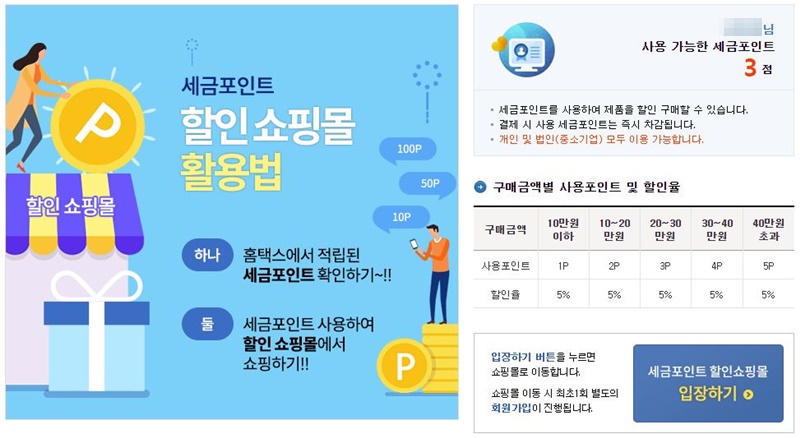 세금포인트 할인쇼핑몰은 일반 쇼핑몰보다 저렴하다는 장점이 있다.