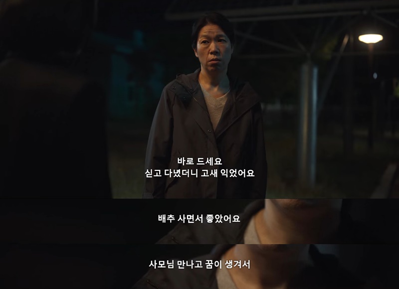 그 후, 현남과 작은 말다툼 뒤에 현남이 건넨 김치.. 살면서 엄마한테서도 받아보지 못한 한국인의 대표적인 애정과 정성이 담긴 김치를 타인에게서 처음 받아 본 동은은 과하다고 생각해 김치를 받아주지 않음.