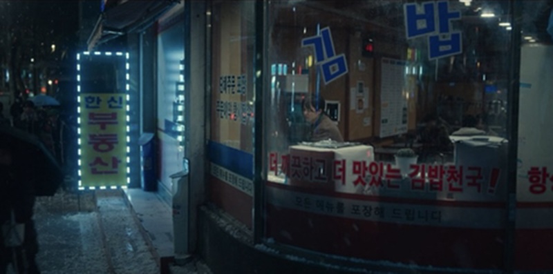 그릇에 놓여진 김밥을 먹는 장면조차 나오지 않고 그저 호일에 싸인 김밥을 오로지 혼자 있을 때만 먹음.