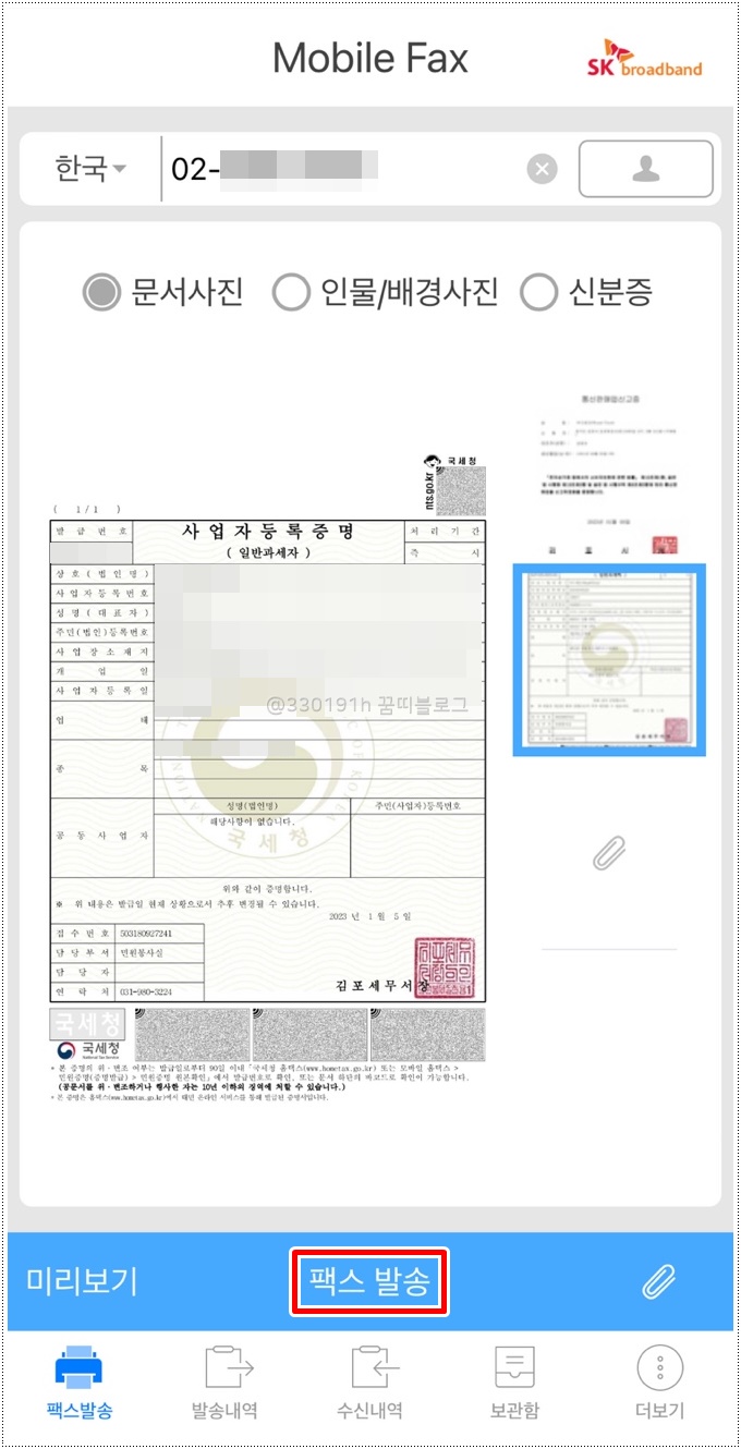 저처럼 세 번째에 성공하지 말고 그냥 처음부터 모바일 팩스 i 사용하셔요.