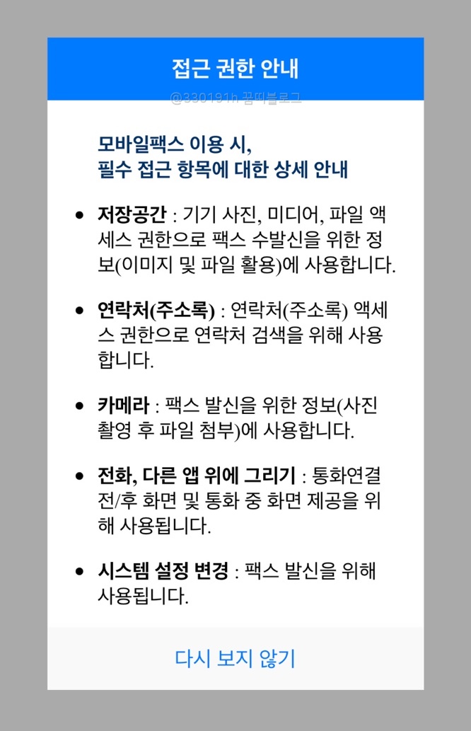 인터넷 팩스 모아샷으로 두 번이나 보냈음에도 불구하고 잘 안 보인다고 해서 결국 그냥 어플 다운받았다.