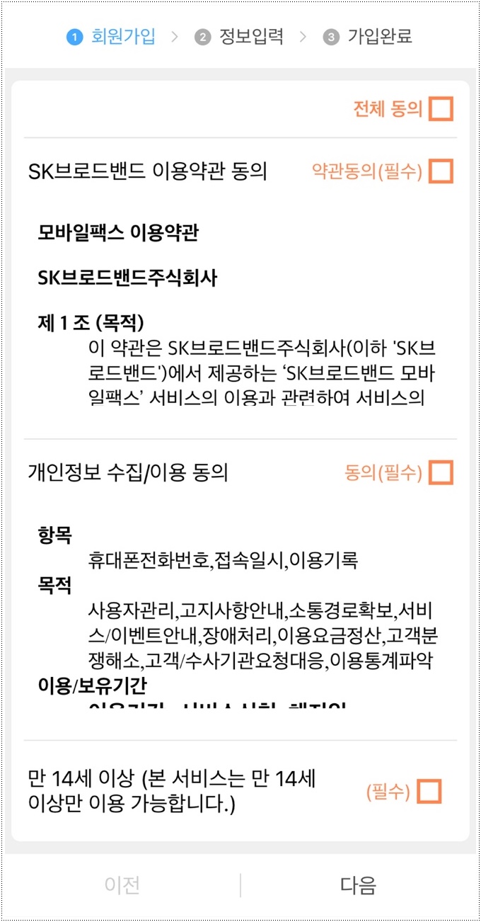 이렇게 모바일 팩스에 가입 완.