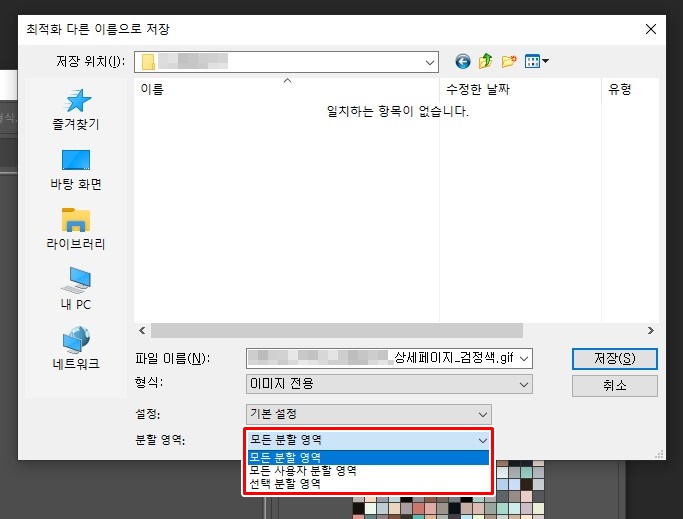 일단 저는 최적화로 자동적으로 선택되었길래 gif로 저장했고요