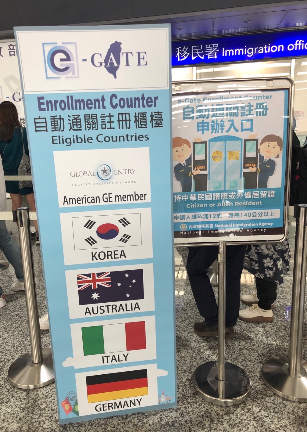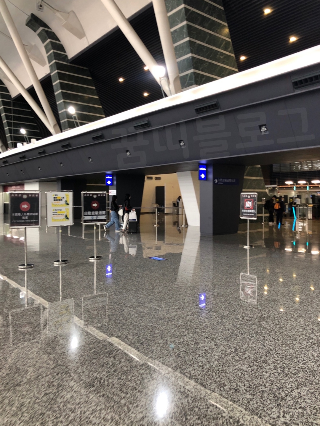 비행기에서 내리고 대만 공항에 도착했습니다. 나오자마자 바로 오른쪽에 e-GATE 줄이 있습니다. 생각했던 것보다 많은 사람들이 있어 놀랐네요. 그래도 대면 입국심사 줄의 반이었습니다. 아직도 아는 사람만 아는. ㅎㅎ