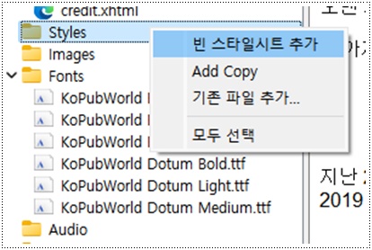 먼저, Styles 폴더 오른쪽 마우스 클릭하면 나타나는 '빈 스타일시트 추가'를 눌러줍니다.