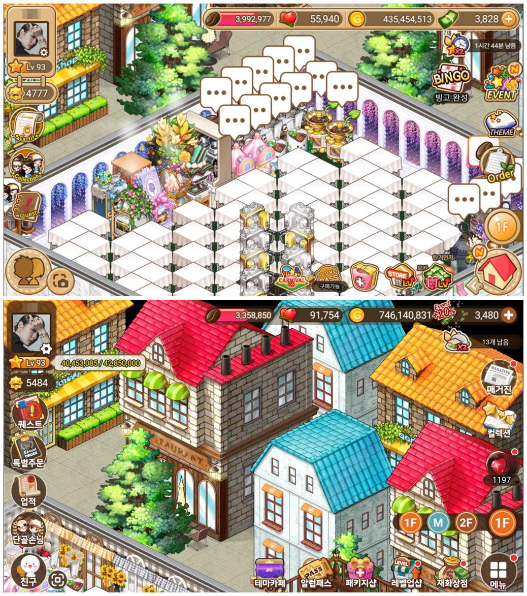 진짜 쓸데없이 아이콘이 커졌다. 저거 다 현질 하는 버튼인데 너무 속보인달까?ㅋㅋ